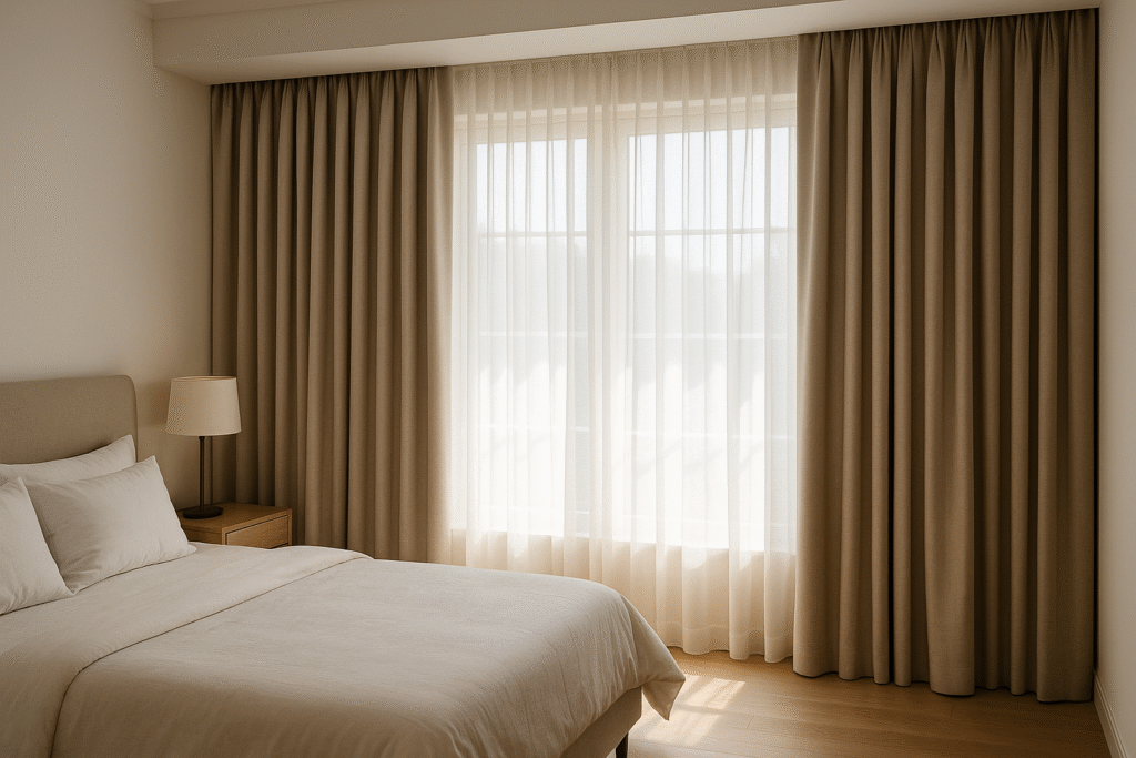 - เลือกขนาดผ้าม่านให้พอดี: ผ้าม่านที่ขนาดพอดีจะช่วยให้การปิด-เปิดม่านทำได้อย่างสมบูรณ์แบบ และป้องกันความร้อนและเสียงรบกวนได้อย่างมีประสิทธิภาพ