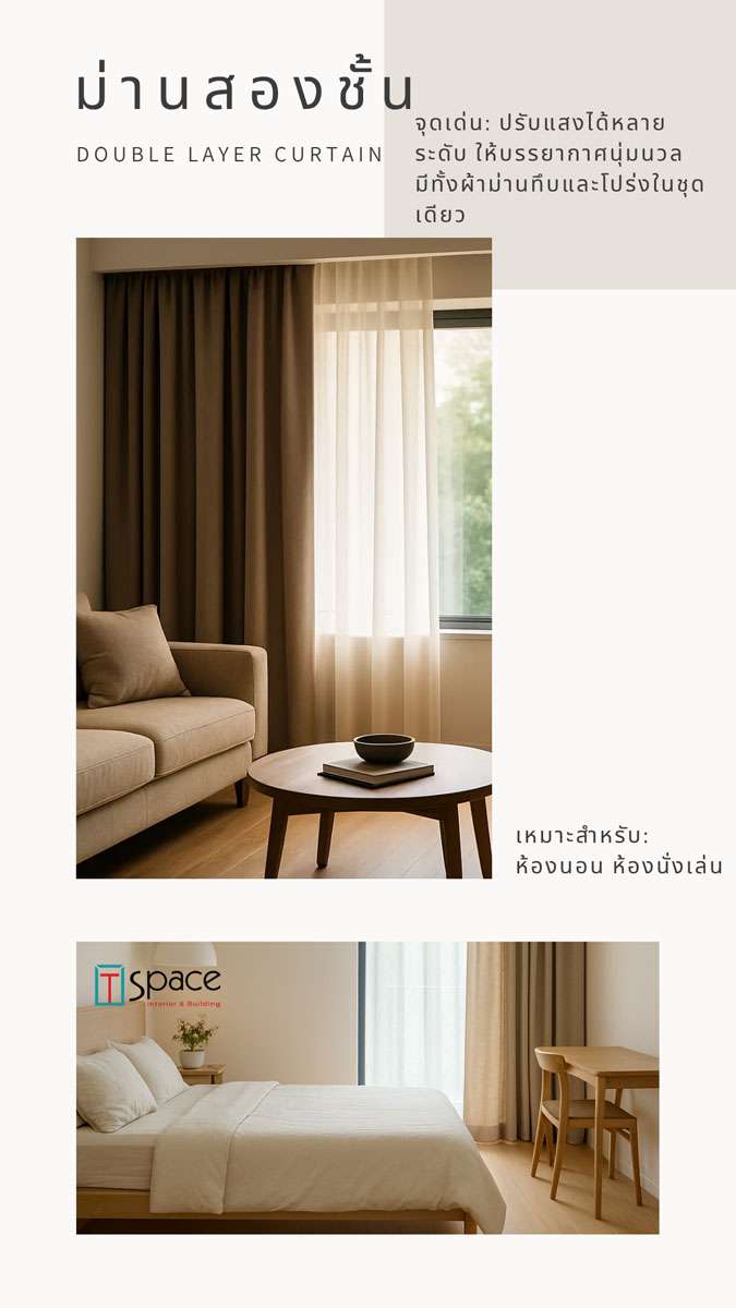 Tspace ผู้นำด้านผ้าม่านและมู่ลี่ระดับพรีเมียม พร้อมมอบประสบการณ์การเลือกผ้าม่านที่เหนือกว่า ด้วยตัวเลือกผ้าม่านหลากหลายรูปแบบจากแบรนด์ชั้นนำ ผสานกับบริการติดตั้งโดยช่างมืออาชีพที่มีประสบการณ์กว่า 20 ปี มั่นใจได้ในคุณภาพและความประณีตทุกขั้นตอน พร้อมบริการหลังการขายที่ดูแลคุณอย่างใกล้ชิด